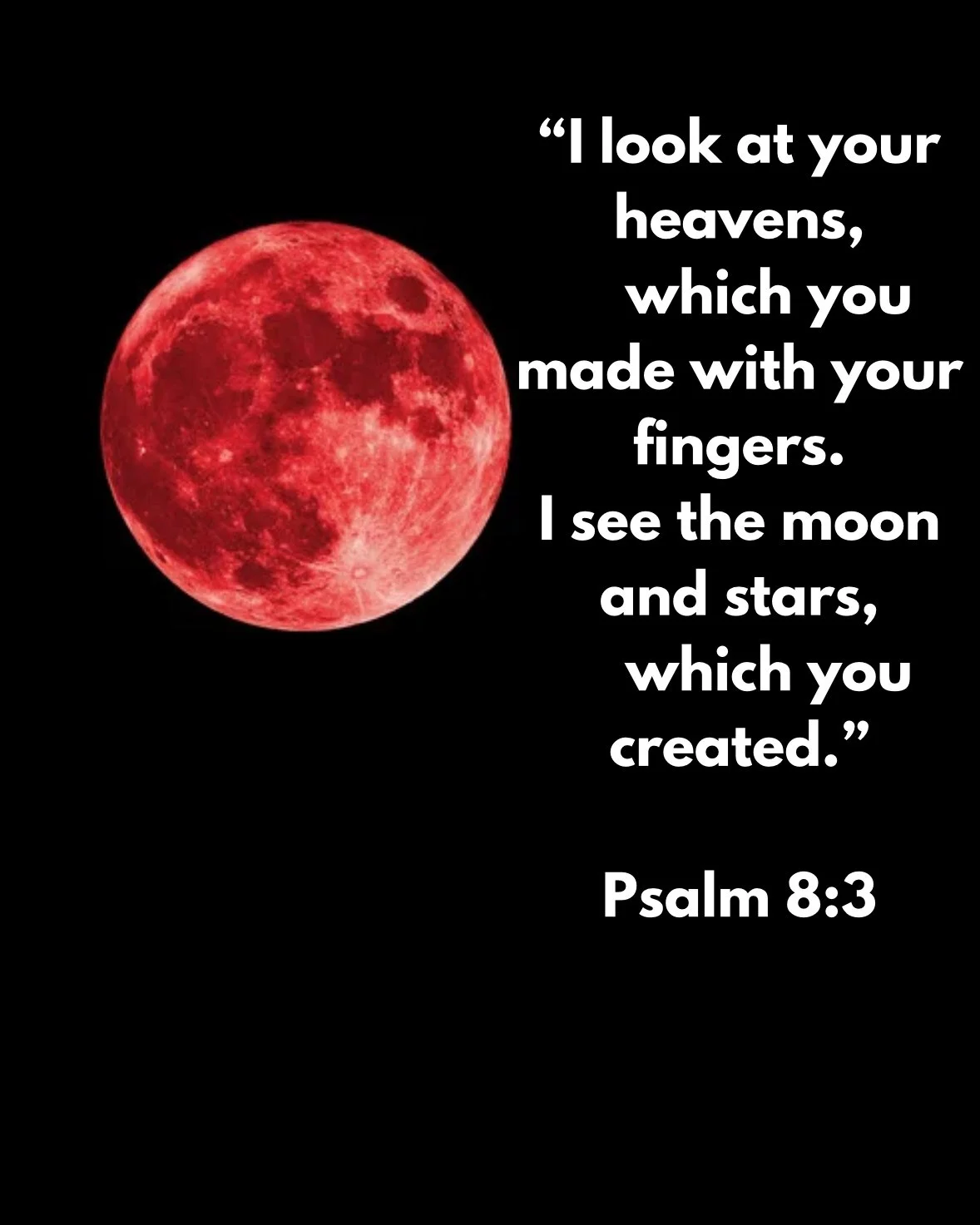 “I look at your heavens, which you made with your fingers. I see the moon and stars, which you created.”